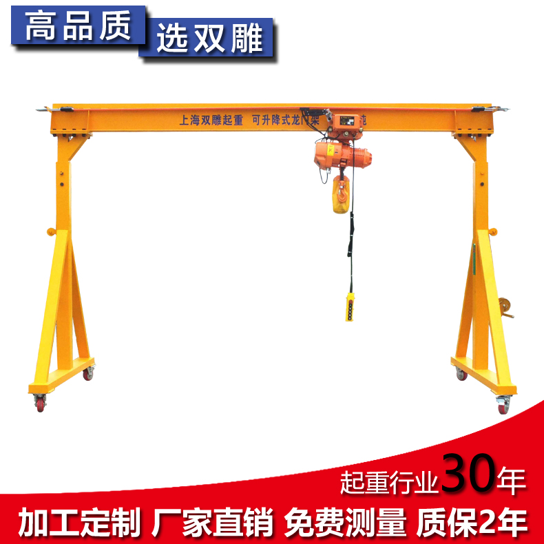 Summary:Shanghai Shuangdiao Hoisting Machinery Co., Ltd. designs and manufactures of mobile gantry series products with simple structure, safe and reliable performance, convenient operation, flexible rotation, large working space, low investment costs and are applicable to equipment installation and debugging, mold handling and maintenance, warehouse goods loading and unloading and other lifting occasions. The products are superior than other conventional lifting and transport equipment. Each type portal crane can be made to disassembled type, after disassembled can be bundled. It is more convenient to transport.